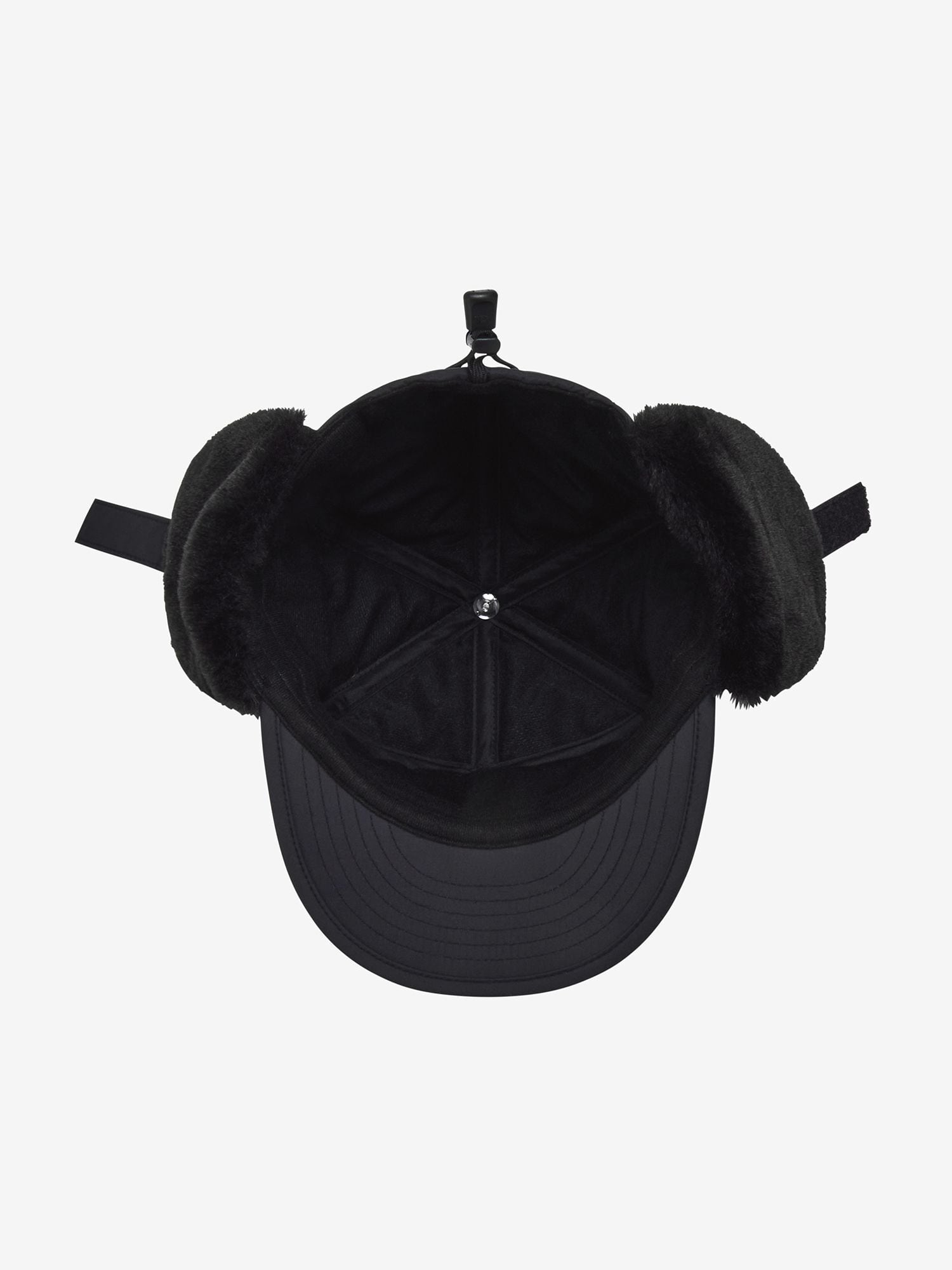 はっ水性のあるナイロンの表生地に、保温力と快適性のある毛足のフリースを耳当て部分に採用。フラップは着脱が簡単な面ファスナー仕様です。